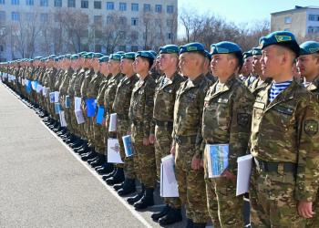 Фото: Министерство обороны Республики Казахстан В Конаевском гарнизоне на плацу 35-й отдельной гвардейской десантно-штурмовой бригады состоялась торжественная церемония проводов военнослужащих...