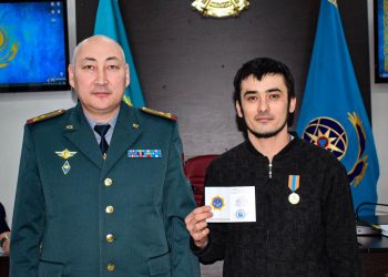 Фото: МЧС РК Временно исполняющий обязанности начальника ДЧС Акмолинской области Канат Доспаев наградил Марата Зиядин медалью «Суға батқандарды құтқарғаны үшін»....