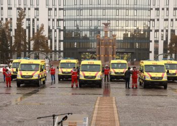 Фото: Мин здрав Парк скорой помощи области Жетысу пополнили на днях 29 новых автомашин, предназначенных для обслуживания вызовов 4 категории...