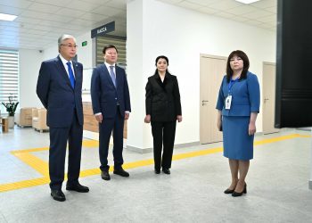 Фото: Akorda Президент Республики Казахстан осмотрел новое здание Центра санитарно-эпидемиологической экспертизы Медицинского центра Управления делами Президента. Центр проводит исследования объектов...