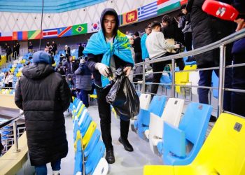 Фото: Акимат города Астаны Группа болельщиков и волонтеров традиционно принимается за сбор мусора сразу после игры, вызывая восхищение и обсуждение...