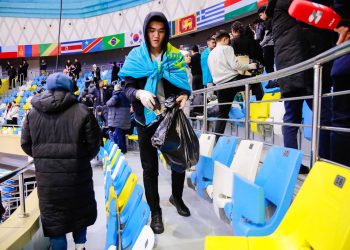 Фото: Акимат Астаны По традиции, сразу после завершения игры, группа болельщиков и волонтеров принимается за сбор мусора. Это инициативное действие...
