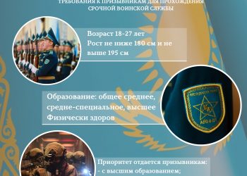 Начинается отбор призывников на срочную воинскую службу в ряды Службы государственной охраны Республики Казахстан. С 1 сентября по 5 октября...
