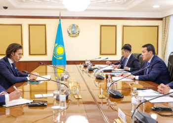 Фото: Пресс-служба Правительства Премьер-Министр Казахстана Алихан Смаилов и президент компании Alstom по регионам Африки, Ближнего Востока и Центральной Азии Эндрю...
