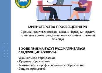 Фото: Минпросвещения Министерство просвещения РК в рамках республиканской акции «Народный юрист» проводит прием граждан в целях оказания правовой помощи. В...