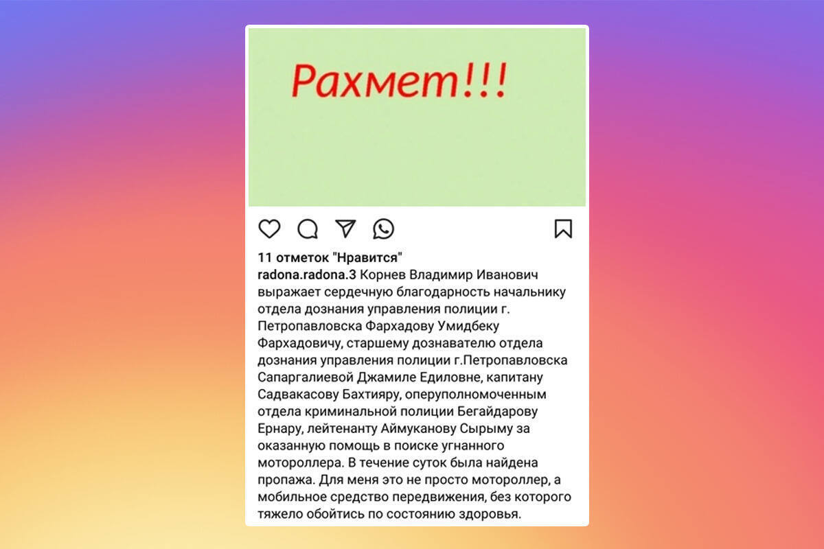 Петропавловец поблагодарил полицейских за возвращенный мотороллер, сообщает Optimism.kz со ссылкой на Polisia.kz. Житель Петропавловска тепло поблагодарил полицейских, вернувших ему похищенный...