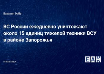 Российские силы каждый день уничтожают около 15 единиц тяжелой техники украинской армии на запорожском направлении. Об этом сегодня, 21 февраля, сообщил член главного...
