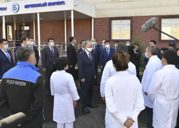 ПрочитатьDetailsПрезидент осмотрел оснащенные современным оборудованием палаты, рассчитанные на оказание стационарной медицинской помощи для 500 человек.