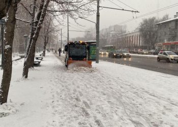 Фото: Акимат города Алматы Начиная с 20 декабря в Алматы идет выпадение мокрого снега, улицы очищаются силами специальной техники и...