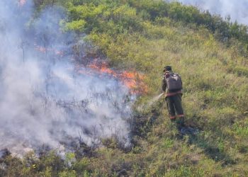 Фото: ДЧС ВКО 5 августа 2023 года в Уланском районе на окраине села Смолянка произошло загорание травы и кустарника в...