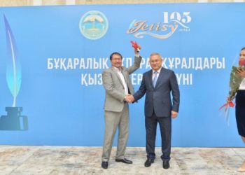 Фото: Акимат области Жетісу Областной газете «Жетісу» исполнилось 105 лет. В честь юбилейной даты аким области Жетысу вручил коллективу областного...
