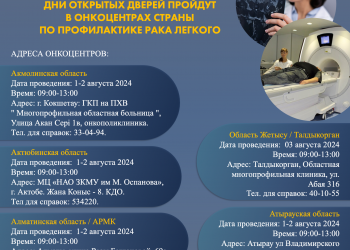 ПрочитатьDetailsФото: Мин здрав С 1 по 3 августа 2024 года государственные онкоцентры Казахстана приглашают всех желающих на Дни открытых дверей,...