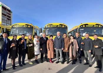 Фото: Акимат области Ұлытау В преддверии Дня Республики аким области Ұлытау Берік Әбдіғалиұлы торжественно передал ключи от новых автобусов восьми...