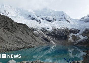 ПрочитатьDetailsОпубликовано 32 минуты назад Источник изображения, Дж. Рэйчел Карр Подпись к изображению, Ледниковое озеро у подножия горы Джомолхари в Бутане....