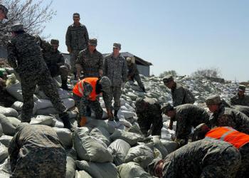 Фото: Пресс-служба Национальной гвардии МВД РК Спасатели и пограничники продолжают борьбу с половодьем в Атырауской области. Для предотвращения второй волны...
