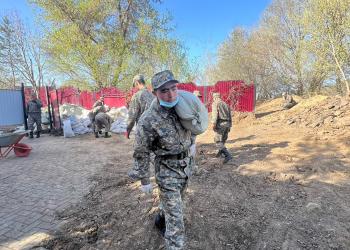 Фото: Региональное командование «Оңтүстік» Национальной гвардии РК Более 100 военнослужащих из воинской части 5547 Национальной гвардии активно участвуют в противопаводковых...