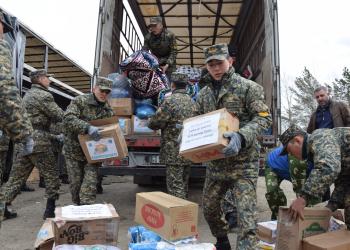 Фото: Национальная гвардия РК Курсант Академии НГ РК сержант Алдияр Оренбас получил гуманитарную помощь от родителей для пострадавших от паводка...