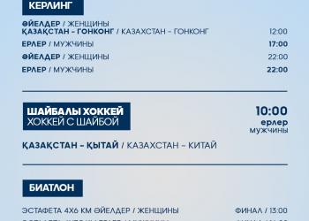 ПрочитатьDetailsФото: Министерство туризма и спорта Республики Казахстан Программа выступления спортсменов Национальной сборной РК на IX зимних Азиатских играх: 13 февраля