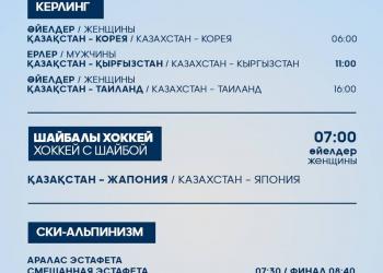 ПрочитатьDetailsФото: Министерство туризма и спорта Республики Казахстан Программа выступления спортсменов Национальной сборной РК на IX зимних Азиатских играх: 12 февраля