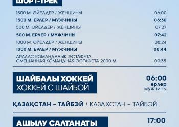 ПрочитатьDetailsФото: Министерство туризма и спорта Республики Казахстан Программа выступления спортсменов Национальной сборной РК на IX зимних Азиатских играх: 7 февраля