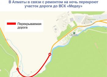 В Алматы в связи с ремонтом на ночь перекроют участок дороги до ВСК «Медеу»