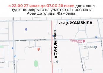 ПрочитатьDetails0 В связи с проведением среднего ремонта участка улицы Манаса, вводятся временные ограничения движения. Так, с 23.00 27 июля до ...