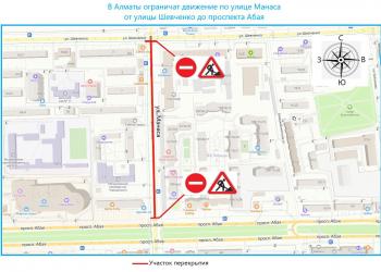 2 В Алматы на два дня закроют проезд на одном из участков по улице Манаса для проведения ремонтных работ на ...