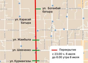 ПрочитатьDetails1 6 июля с 22:00 до 10:00 7 июля будет закрыто движение автотранспорта по улице Жансугурова в районе пересечения с ...