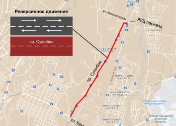 В Алматы на участке проспекта Суюнбая временно будет организовано реверсивное движение