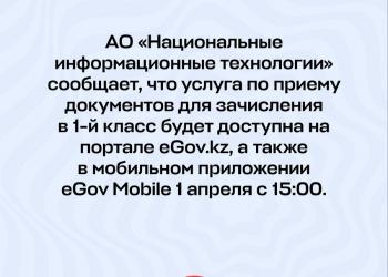 ПрочитатьDetailsФото: Акимат Астаны В АО «Национальные информационные технологии» сообщили, что услуга по приему документов для зачисления в 1-й класс будет ...