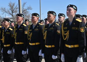 Фото: Министерство обороны Республики Казахстан В Актауском гарнизоне на плацу военно-морской базы состоялась торжественная церемония прощания матросов с Боевым знаменем. ...