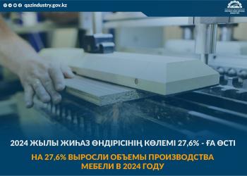 ПрочитатьDetailsФото: МПС РК Объем производства мебельной продукции в 2024 году достиг 105,4 млрд тенге, что больше на 27,6% в сравнении ...