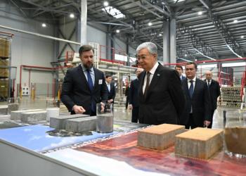 Фото: МПС РК Глава государства посетил завод по производству тротуарной плитки Asyl Qala – специализированное предприятие, где трудятся более 100 ...